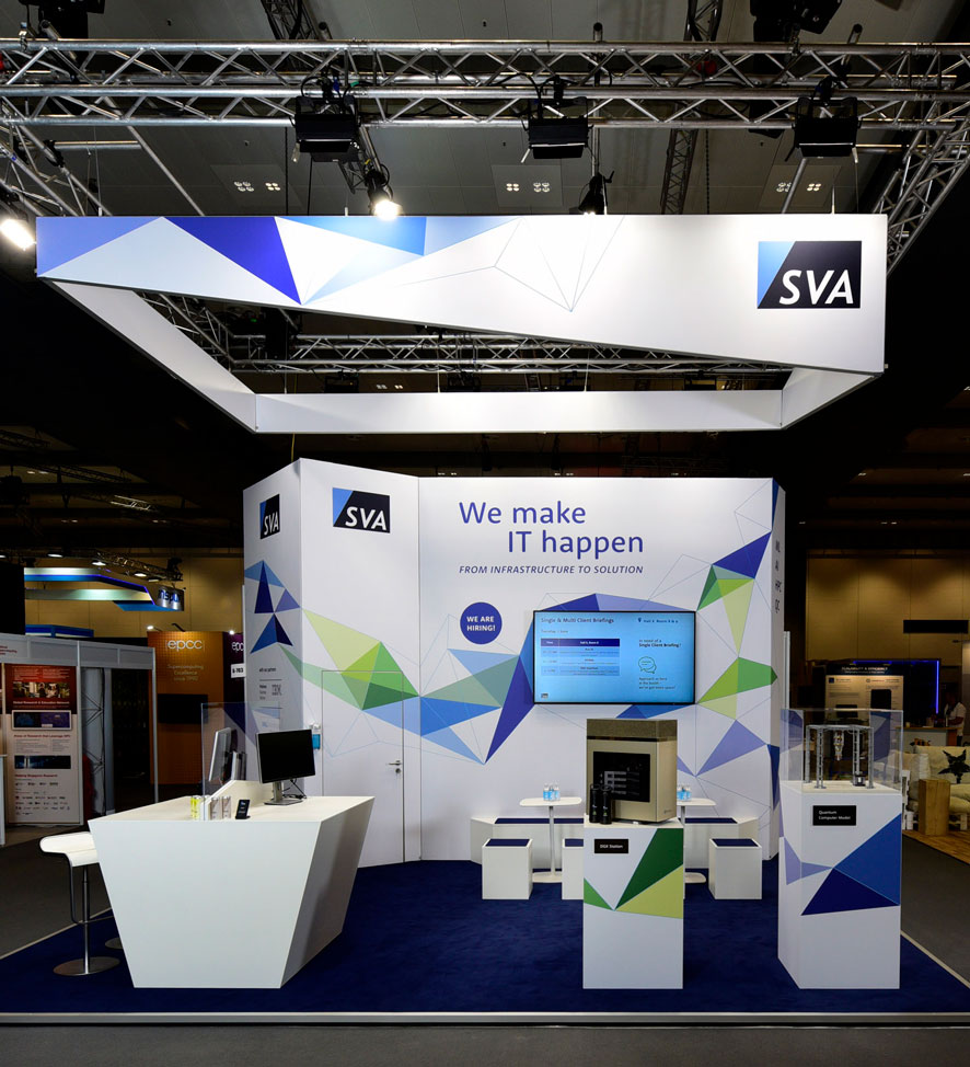 SVA gehört zu den führenden IT-Dienstleistern Deutschlands. Mit IT-Produkten führender Hersteller, ihrem Projektknowhow und Servicespektrum sowie eigenen Softwareprodukten und großer Flexibilität erarbeitet SVA optimale IT-Lösungen für Unternehmen und öffentliche Auftraggeber. Mit einem offenen Standkonzept mit großzügigen Kommunikationsflächen legt SVA den Fokus auf den Dialog mit Kunden und Partnern.